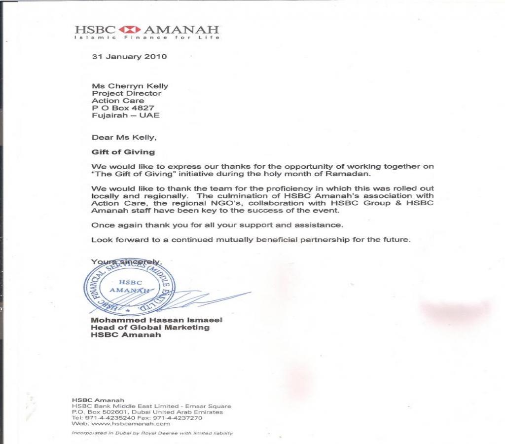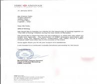 Letter of Appreciation from HSBC Amanah (Jan 2010)