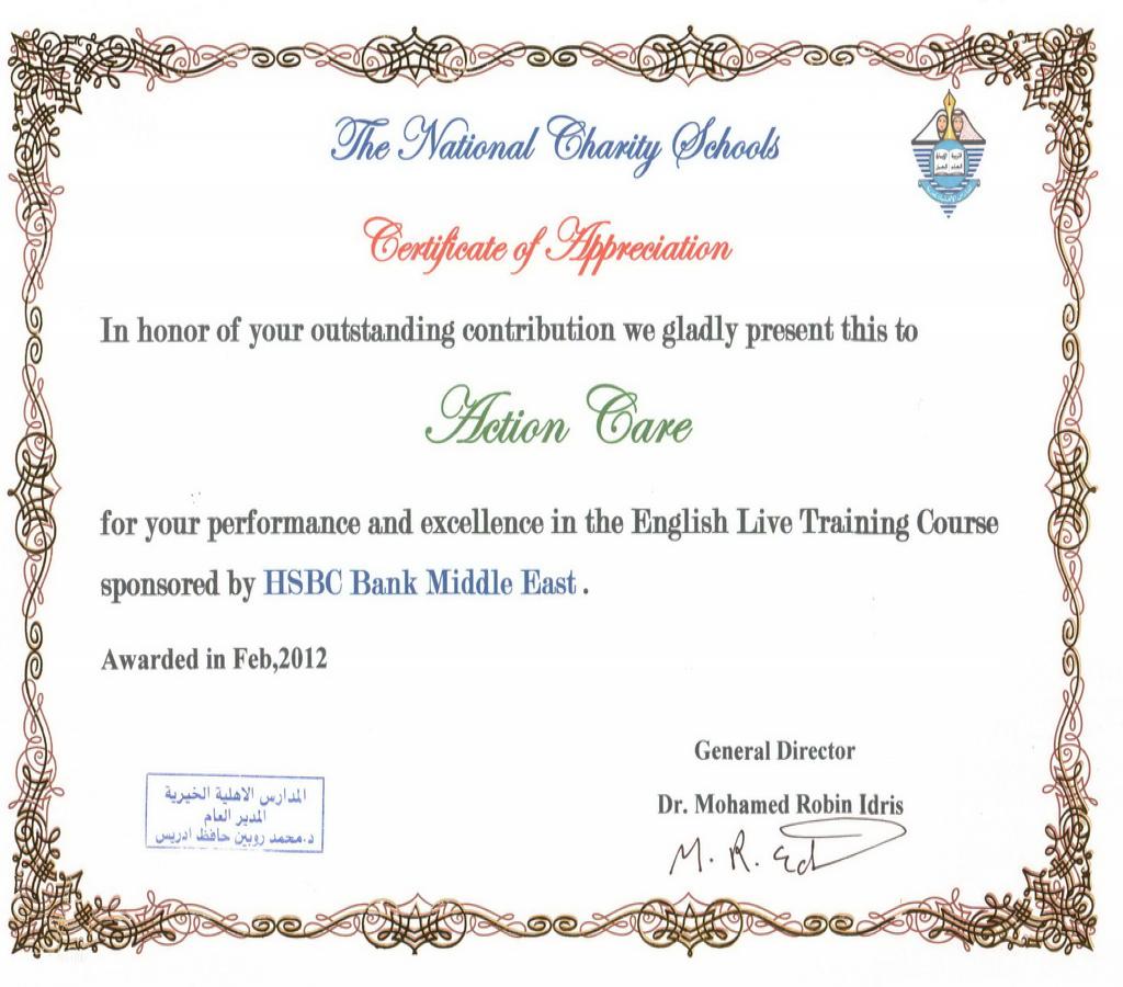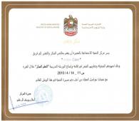 Certificate of Appreciation, Manar Al Eman - November 2013