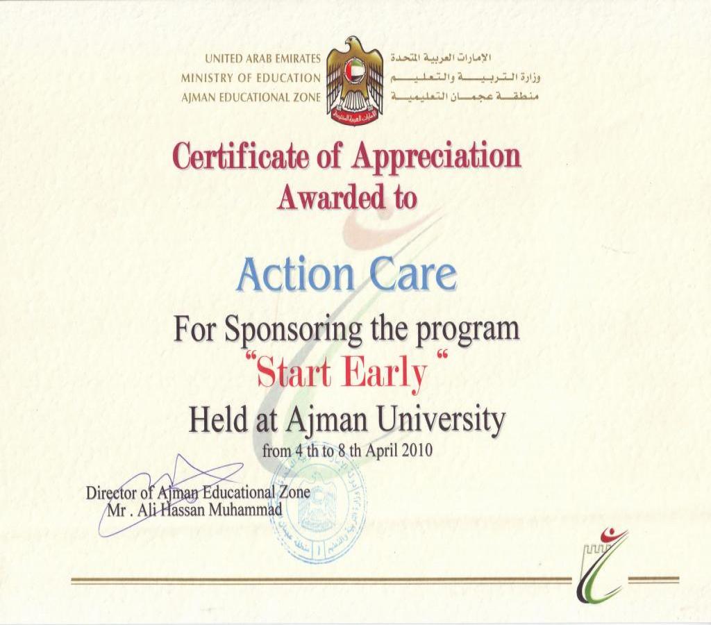 SE Certificate of Appreciation Ajman U-AC (April 2010)