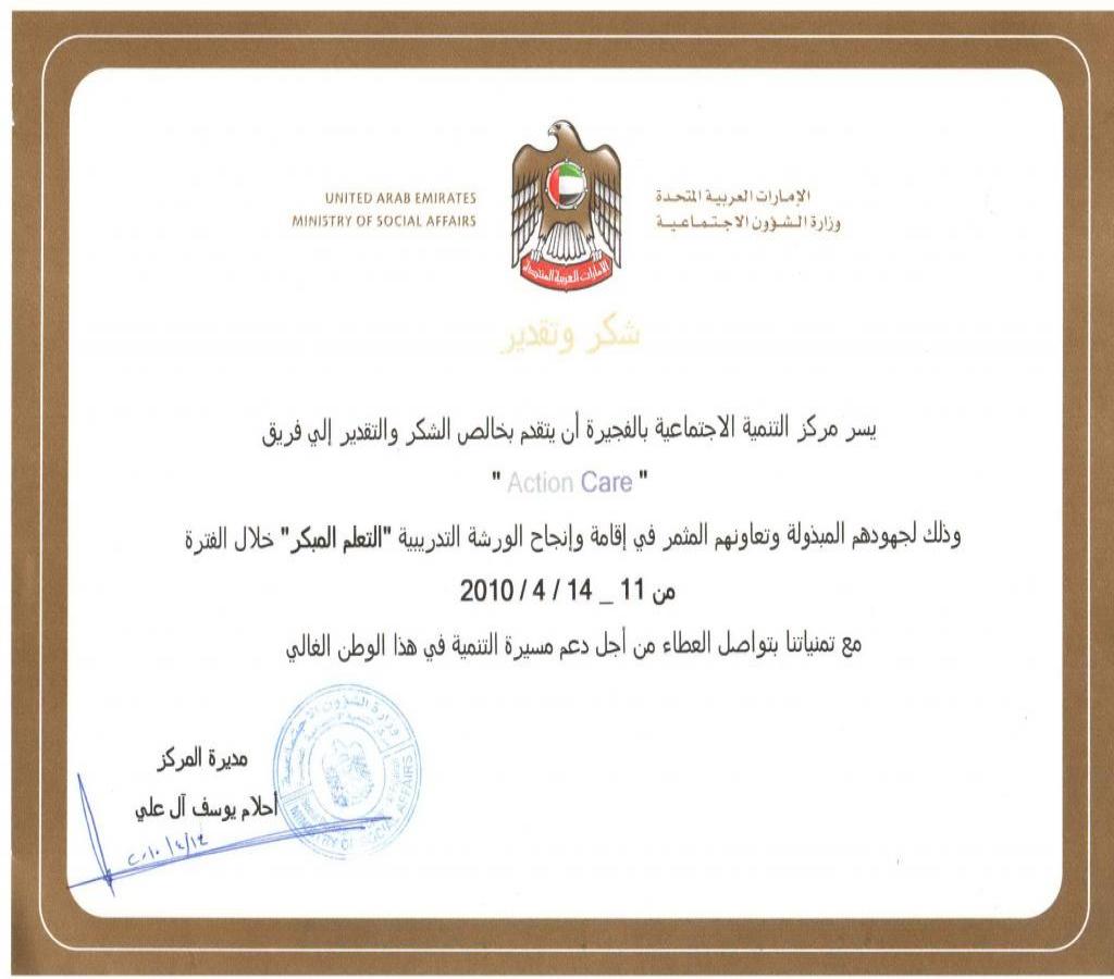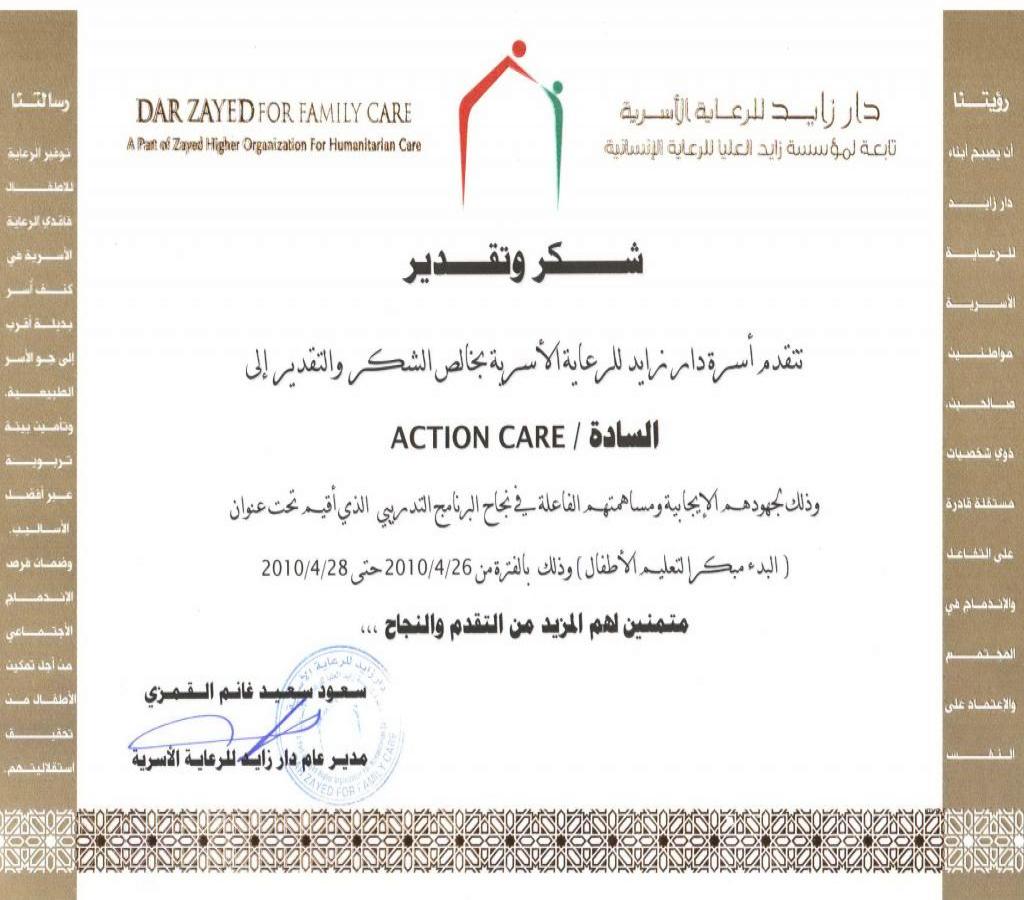 SE Certificate of Appreciation Dar Zayed - AC, (April 2010)